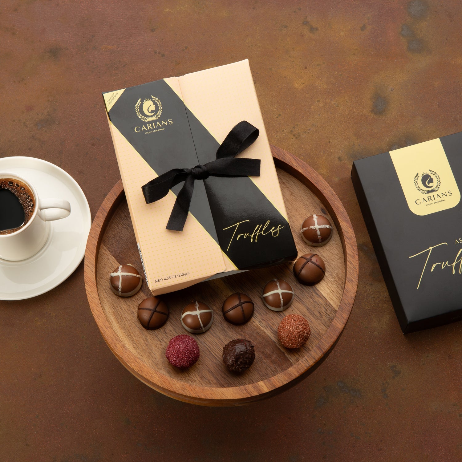 Indulge in the luxurious flavors of the Carian’s Bistro Dubai Truffle Chocolate Gift Box — a refined harmony of premium milk chocolate, caramel, bitter,rasberry and hazelnut.